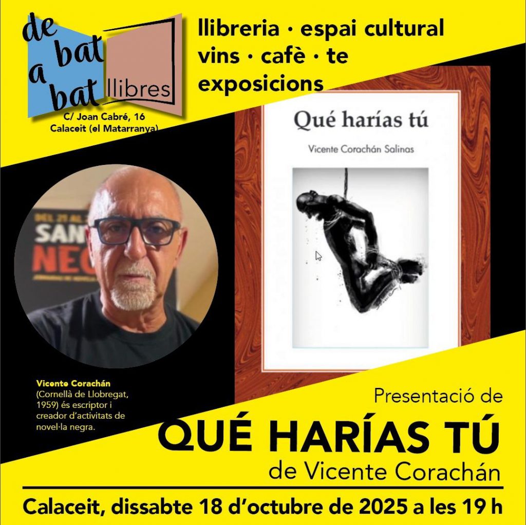 El 18 de octubre, a las 19 h, estaré en Calaceite (Teruel) con mi novela Qué harías tú.